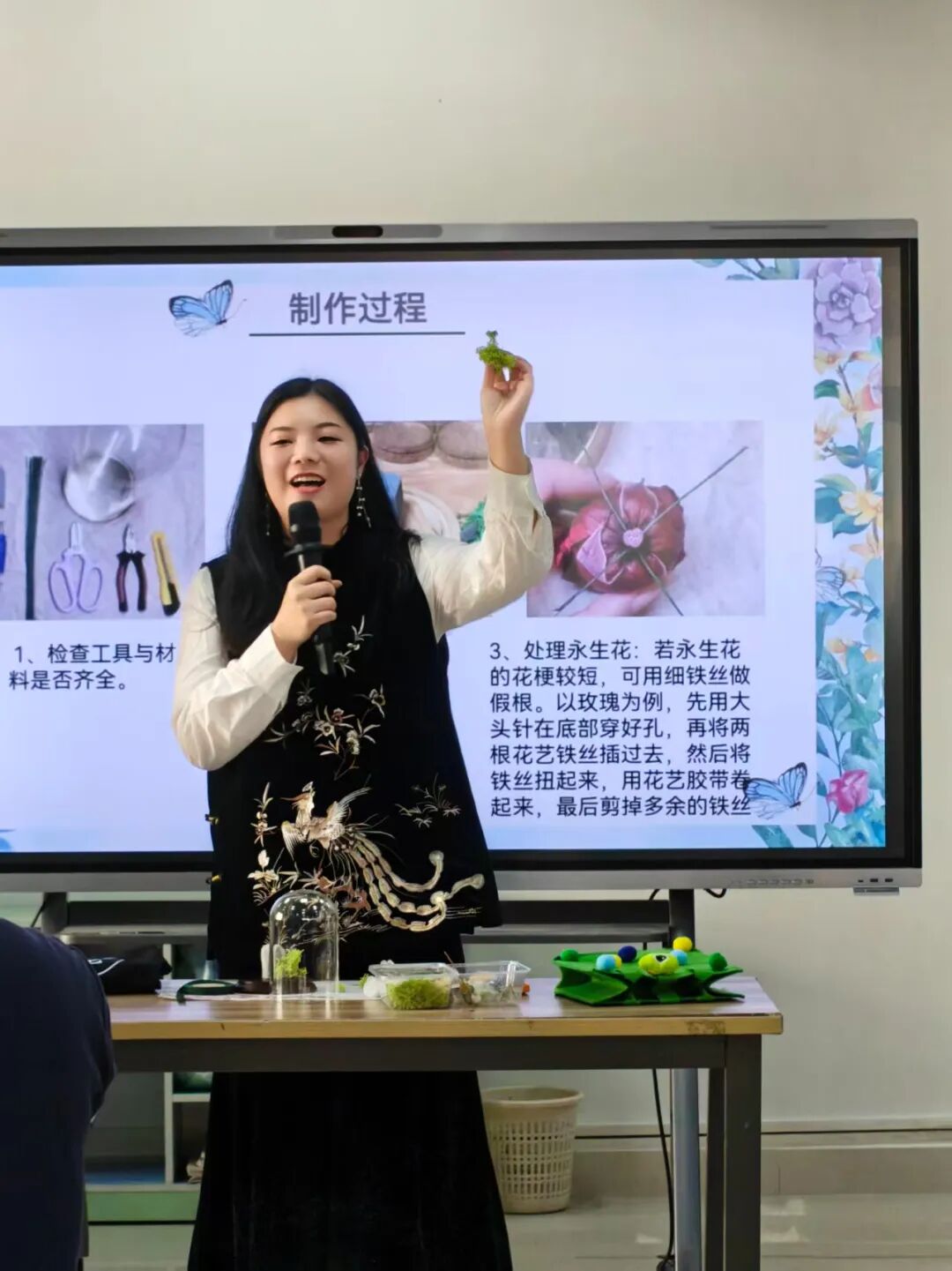 因此,她与合伙人打造了一个“利他”的共享空间——既是非遗手工体验的阵地,也是创业者交流赋能的平台。这里每周都会开办财富流沙龙,通过现金流游戏模拟20~60岁的创富历程,提升参与者的财商思维;同时也与高校展开合作,走进校园开展永生花沙龙等活动,仅在机电学院的工会活动中,就有30多位教师参与体验,其中不少男老师也沉浸在手工创作中,将做好的永生花作为礼物送给家人、爱人或摆在办公室。她们以极低的成本运营,搭建了一个“相互赋能” 的社群。
