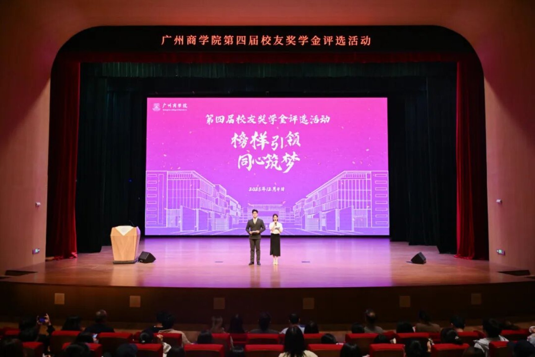 榜样引领,同心筑梦,群英荟萃,尽显担当,薪火相传,再启新程。12月4日下午,我校第四届校友奖学金评选活动在求真文化中心圆满举行。学校党委副书记、常务副校长何柏略出席活动,教务处处长陈淑萍教授、图书馆馆长高波教授、校友会执行会长翁楚歆副教授、学生工作部副部长许忠旺副教授、马克思主义学院党总支书记王璇副教授担任校友奖学金评选活动评委,各学院师生代表、校友代表等600余人参加评选活动,线上观看人数超4000人。
