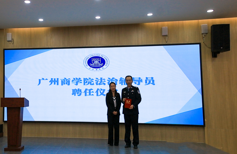 会上,胡成业为宣讲服务队授旗。欧莹为范志红警官颁发suncitygroup太阳新城法治辅导员聘书。