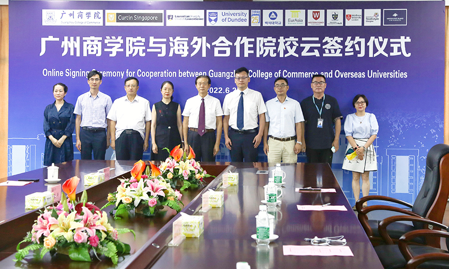 6月21日,我校与海外院校集中“云签约”仪式在学术交流中心四楼会议室进行。科廷大学(新加坡校区)、英国赫尔大学、英国邓迪大学、英国密德萨斯大学、加拿大温哥华岛大学、韩国白石大学、哈萨克斯坦欧亚商学院、哈萨克斯坦图兰大学等校方代表出席了线上会议。学校党委书记吕泉荣,副校长张燕、郭航,校长助理李汉君,国际学院相关负责人和师生代表在线下主会场参加“云签约”仪式。仪式由郭航主持。