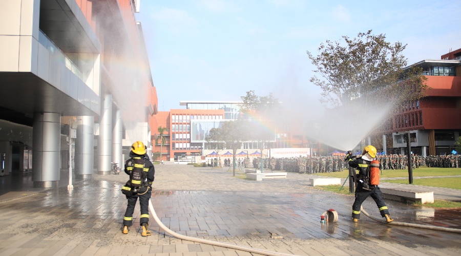 为贯彻落实国家和广东省教育厅有关“防灾减灾”工作要求,切实提升广大师生安全能力,结合新生军训的有利契机,开展安全教育系列培训活动,是我校多年来形成的安全工作经验,也是提升师生安全能力的具体举措。9月25日下午,我校在三号学生公寓、图书馆及第八教学楼,组织开展了2024年“校园应急避险和安全防范疏散演练活动"。本次演练活动分“地震应急避险安全疏散”和“消防应急避险安全疏散”两大部分,近1000名师生参加演练。学校党委副书记、纪委书记、常务副校长何柏略担任总指挥,保卫处处长胡成业任现场指挥,学校综合办公室、学生工作处、教务处、保卫处、后勤服务中心、党委宣传部、图书馆等职能部门、各二级学院党总支书记和属地黄埔区龙湖街安委办、龙湖派出所及新龙消防救援站相关负责同志参与演练活动。