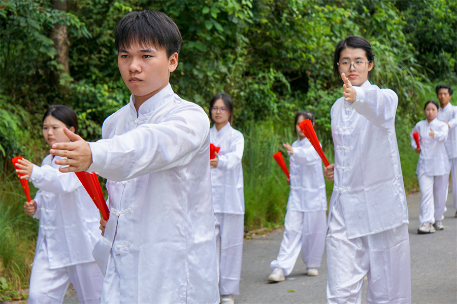 我校学子展示太极扇