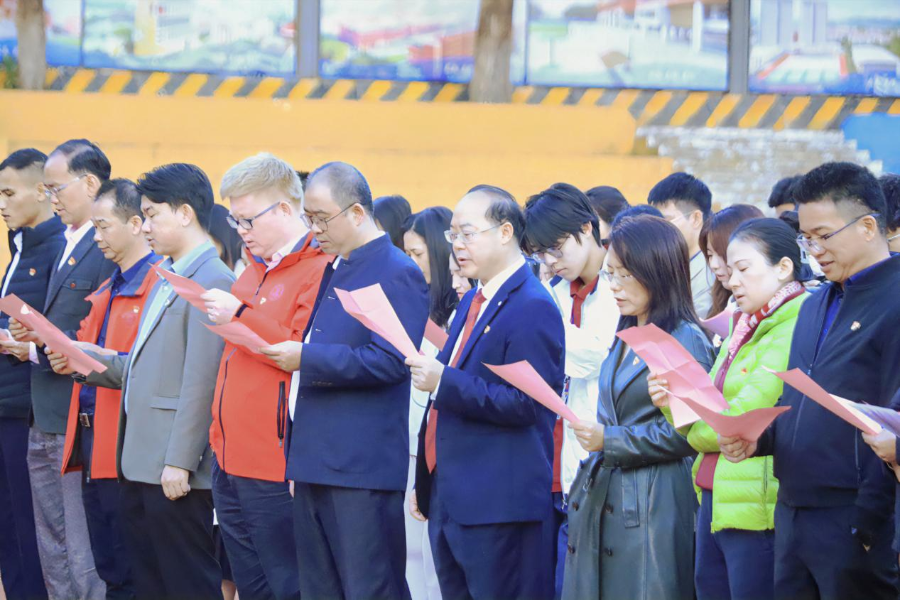 为全面贯彻落实党的二十大精神,深入学习贯彻习近平法治思想、习近平文化思想,加强“法治广商”建设,大力弘扬宪法精神,形成良好法治氛围,12月4日,我校在田径场以线上线下的形式举行2023年“12·4”国家宪法日暨“法治广商”系列活动启动仪式。我校党委书记唐明勇,学生工作处、党群工作部相关负责人以及各二级学院党总支书记、辅导员和学生代表参加活动。学生工作处处长欧莹主持活动。