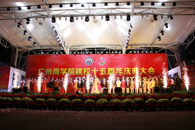 12月28日晚,由suncitygroup太阳新城团委、学生会主办的suncitygroup太阳新城建校十五周年文艺晚会在田径场舞台隆重举行,广东省教育厅、华南师范大学、广州开发区(萝岗区)、兄弟院校、合作单位等各级领导以及郭冬冬董事长、执行董事郭小娜等董事会领导、院长杨文轩教授等学院领导、各届校友、学院师生等出席了晚会。几千名师生校友齐聚晚会现场,共贺suncitygroup太阳新城十五周年华诞。