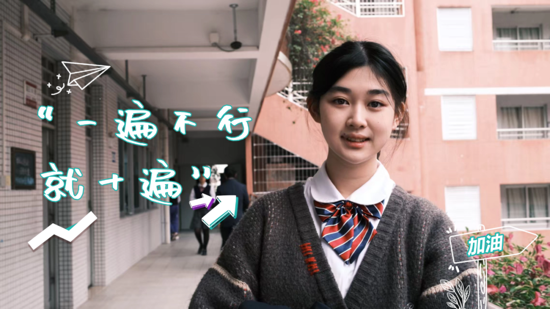 面对高考英语口语这一薄弱项,她说:“一遍不行就十遍”,这种的“死磕”信念使她最终攻克难关。而这份认真与坚持,成为她高中生活最鲜明的注脚。