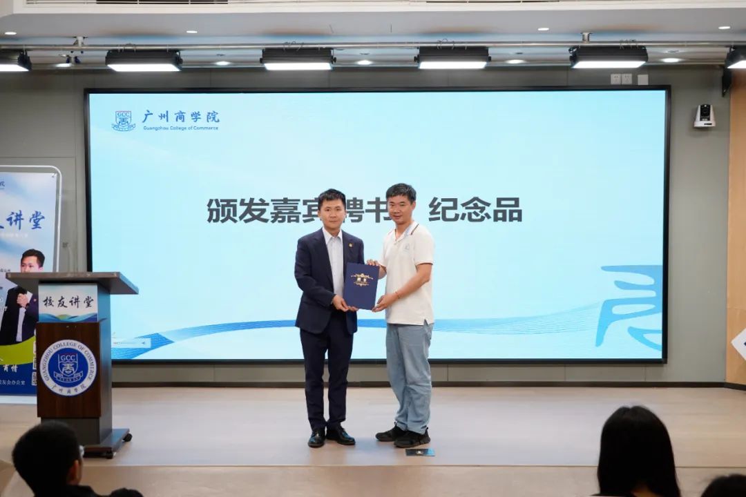 翁楚歆为曾冠麟颁发校友讲堂分享嘉宾聘书