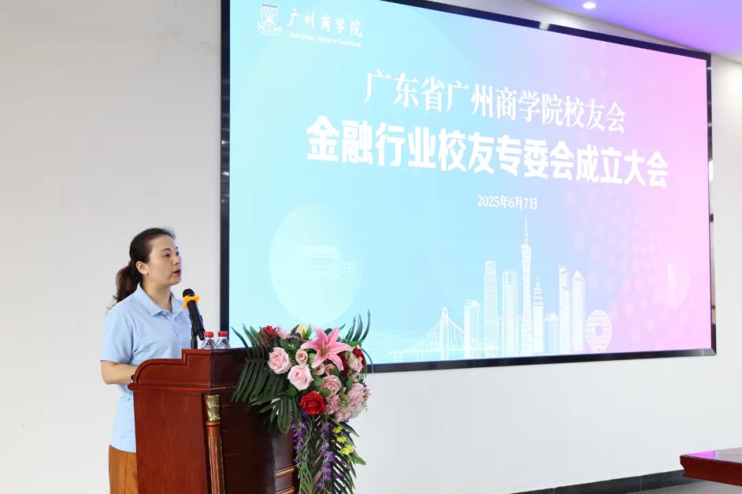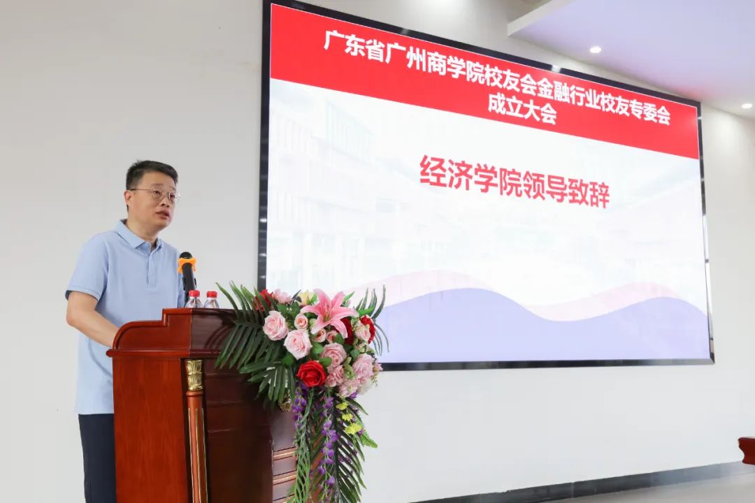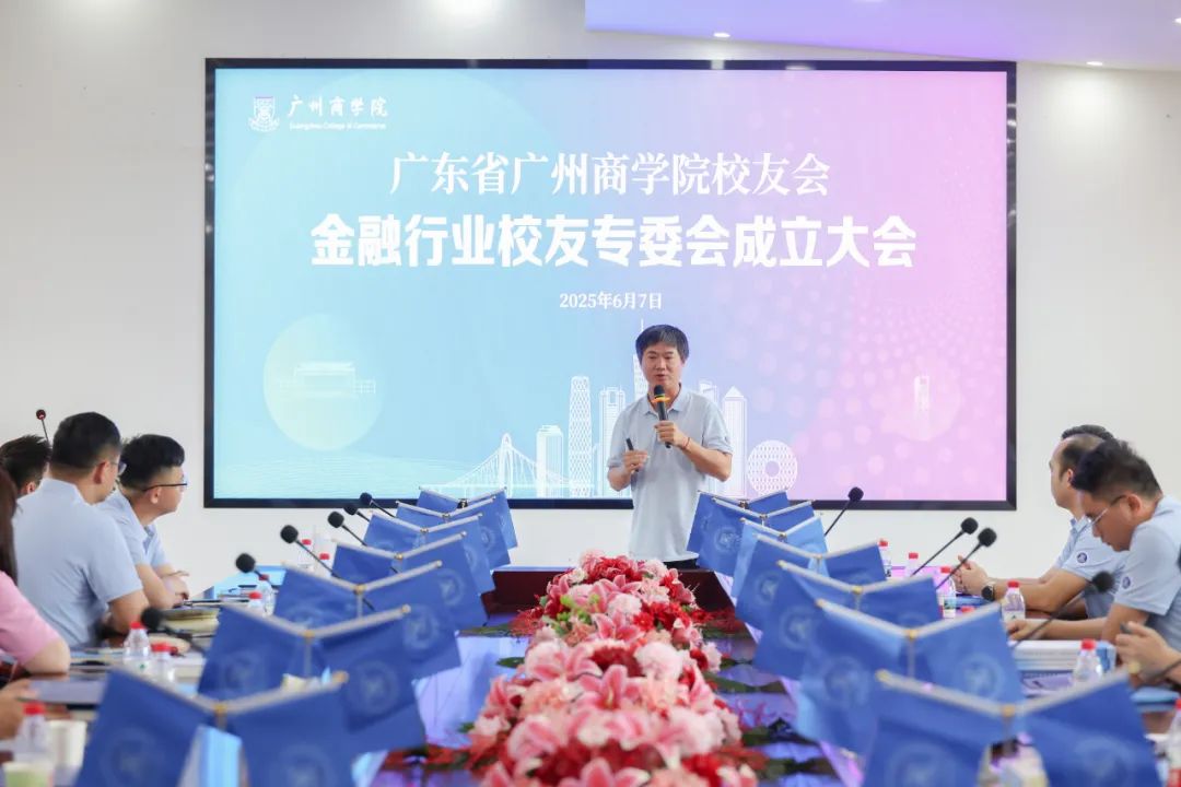吴昱对校友们的到来表示热烈的欢迎并对筹备本次专委会成立大会的工作人员表示衷心的感谢。他表示,经济学院作为专委会依托单位,开设金融学、投资学等五个本科专业,其中金融学专业入选广东省“一流本科”专业建设点,金融科技专业应时而生,展现了学院紧跟行业趋势的办学实力。学院积极推动产教融合,为学生搭建优质成长平台。自1999年至今,广商已培养数千名金融人才,他们在粤港澳大湾区及全国经济社会发展中贡献卓越。未来,金融行业校友专委会将凝聚全体金融领域校友力量,传承“求真、立信、笃行”的校训精神,共同谱写广商人的辉煌篇章。