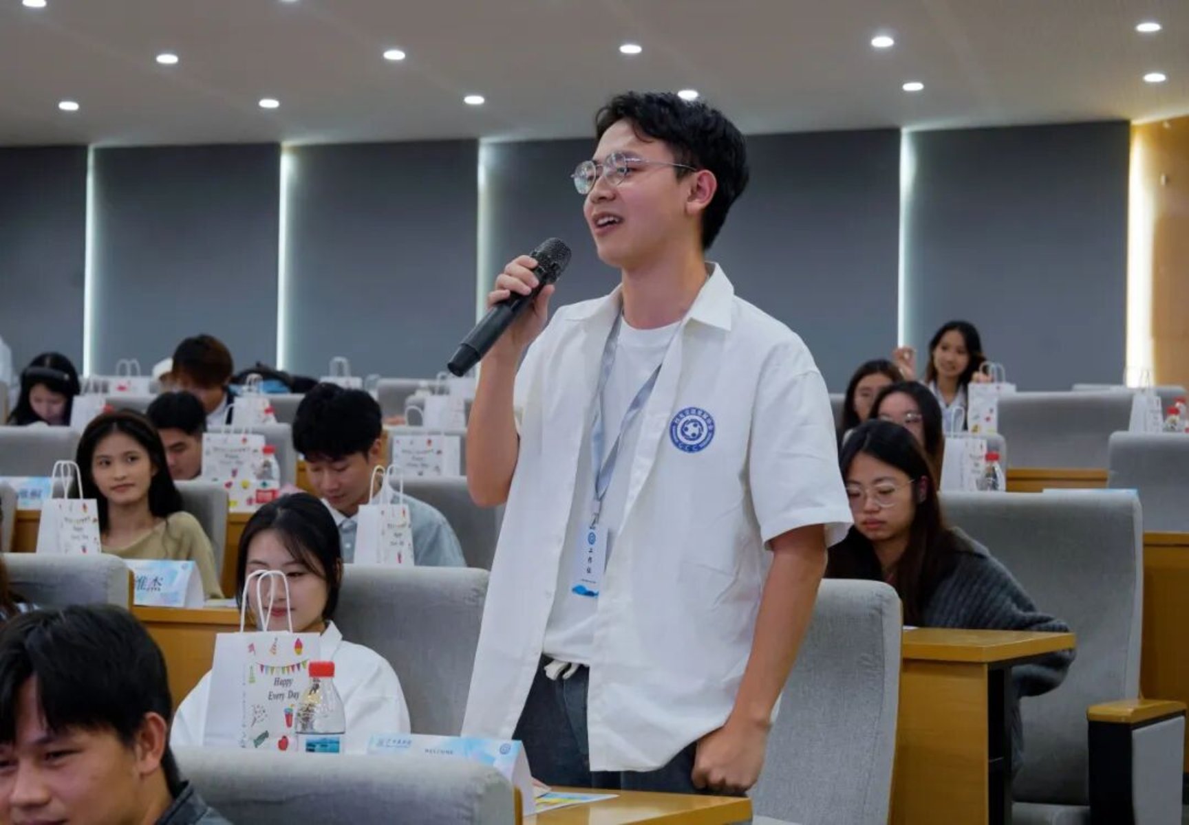 游戏环节将现场分为“新生逐光队”与“薪火同盟队”。“特征猜谜”考验观察,“听歌识曲”比拼反应,“校友猜猜猜”深化对校友文化的理解。新老成员在协作中破冰,在欢笑中升温。