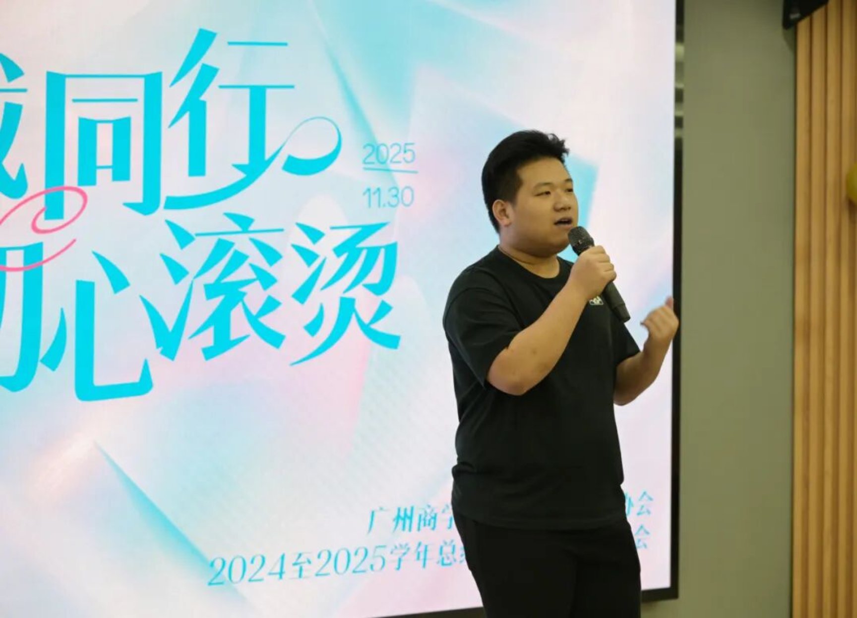翁楚歆老师的总结讲话,提出了对所有成员的殷切期许:“人的世界,情的天地,有味道的人生——大学正是这浓墨重彩的一笔。”他寄语成员:在大学这一浓墨重彩的篇章中,以真诚为底色,大胆创新,希望大家能在校协成长为有担当、有情怀的广商人。这不仅仅是一次发言,更是为我们的新征程点亮一盏引路的灯。