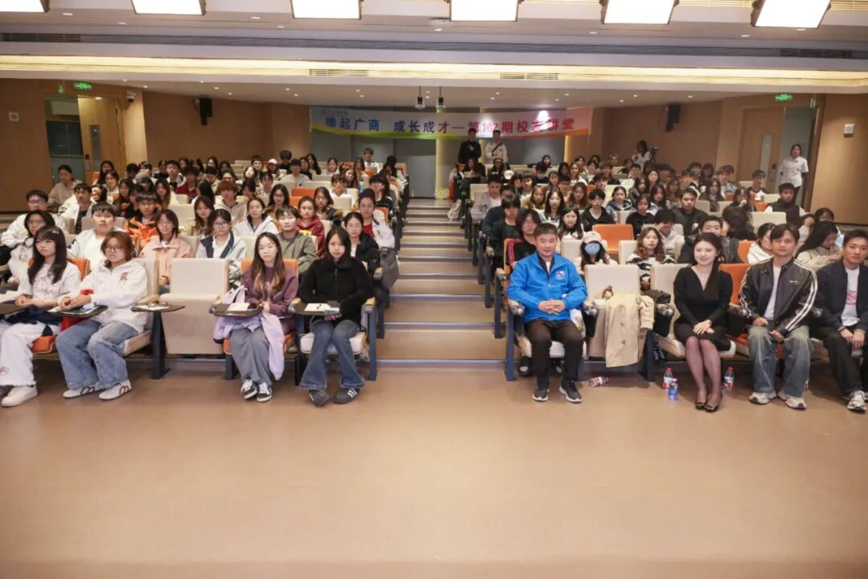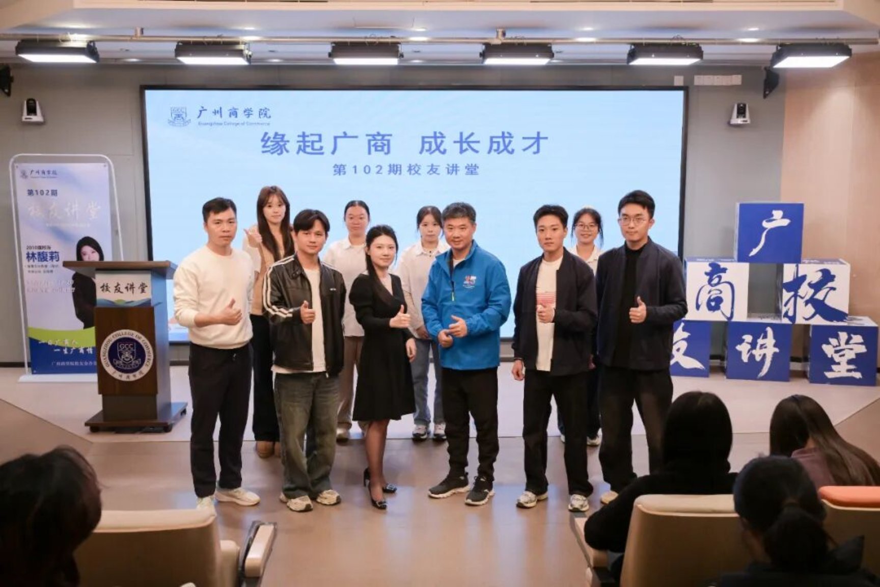 讲堂尾声,林馥莉还分享了具体建议:视听结合,观看《令人心动的offer》等职场综艺节目学习简历撰写、研究实习方向,关注大厂认证的职业技能证书,通过《无聊斋》等播客拓展知识面,掌握不同场合自我介绍的技巧等。这些实用方法为学子们提供了明确指引。“求真立信笃行——这是我们广商的校训,也是我在职场中始终秉持的信念。”林馥莉以此赠言师弟师妹们,鼓励大家在变化中把握商业本质,用专业能力建立职场信用,以实际行动创造价值。