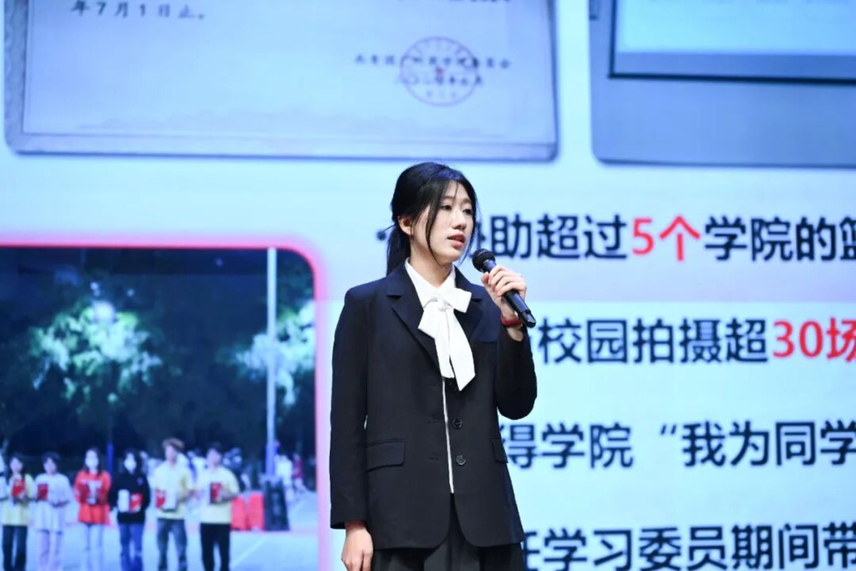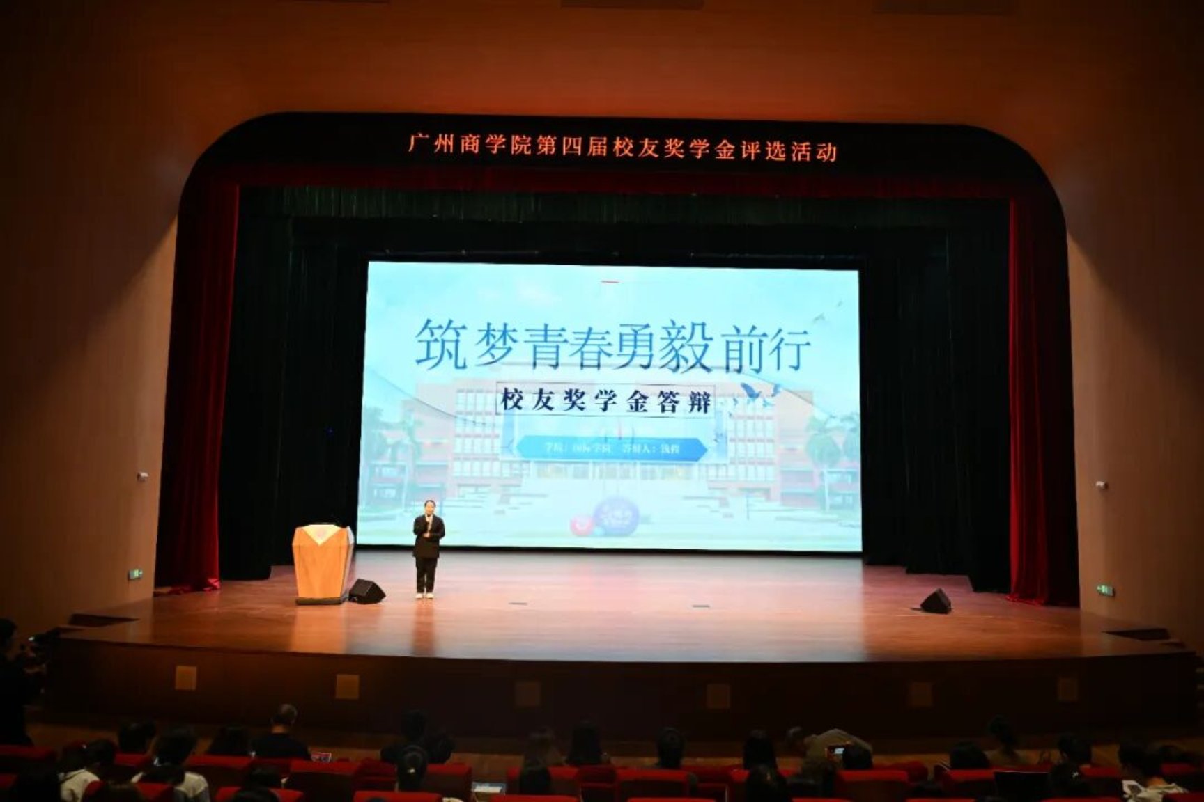 经过前期,选拔十位优秀候选人站上了最终的竞演舞台。他们围绕思想品德、学业成绩、竞赛科研、社会实践、志愿服务、校友活动参与及个人突出表现等方面,进行了限时四分钟的精彩演讲。随后的评委提问环节,面对师长们关于学业规划、实践思考、成长感悟等方面的提问,同学们沉着冷静,思路清晰,对答从容,获得了评委老师的肯定。