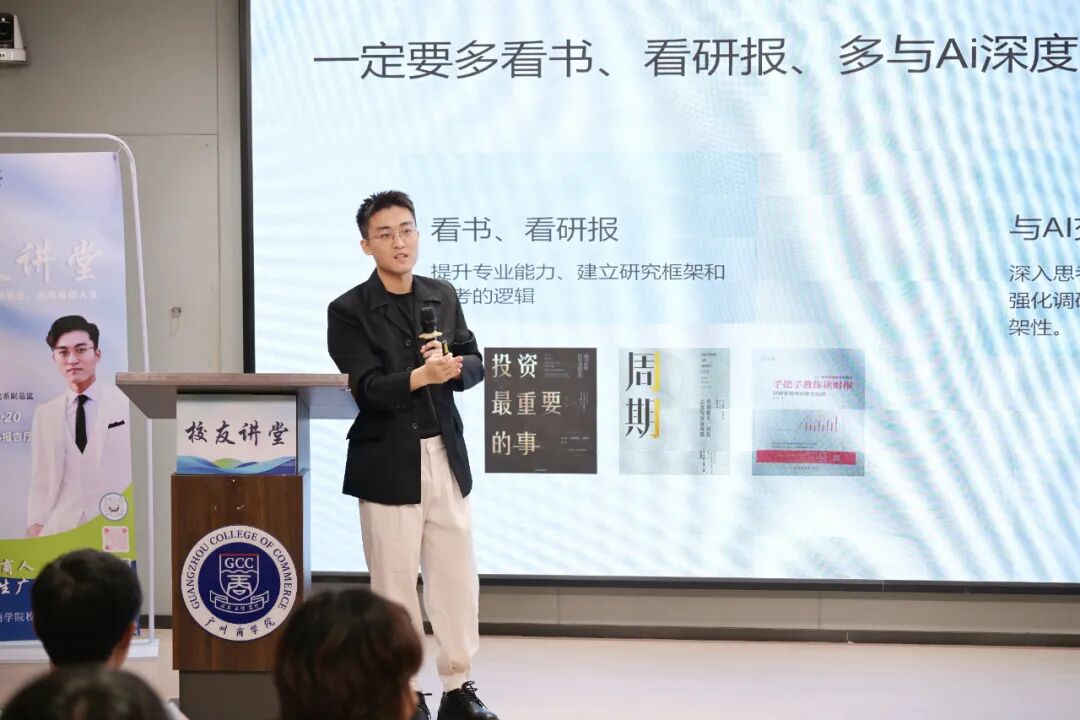 针对大学生和初入职场者,他给出了具体建议:1,少炒股,多问为什么,他引用了《巴菲特之道》的一句话“回看哪些多年炒股经历的人,最大的损失并非股票亏损,而是由此耗去的时间和精力,本可以成就另一番事业。”2,多看专业书籍和研究报告,多与AI深度交流。师兄特地用了三个词“井底之蛙”“盲人摸象”“管中窥豹”,来强调不看书的后果,强调不要高估自己的认知,要通过看书提升眼界,搭建思维框架,然后多与AI深度交流,提升思考能力和调研疑问的能力。3,多看行业综艺、电影,提升专业形象。师兄特地推荐了《闪闪发光的你5》,是华泰证券实习的综艺,特别强调了金融职场的穿着、发型、言语,要能传递成熟、靠谱、可信的专业形象。