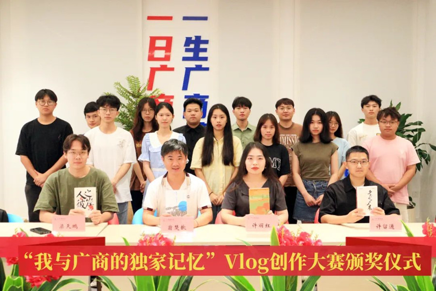 6月16日晚,首届“我与广商的独家记忆”Vlog创作大赛颁奖仪式在校友俱乐部举行。学校党委委员、宣传部部长、校友会执行会长、校友办主任翁楚歆老师,宣传部梁天鹏老师,法学院辅导员、校友工作联络员许丽红老师以及获奖团队代表出席颁奖仪式。