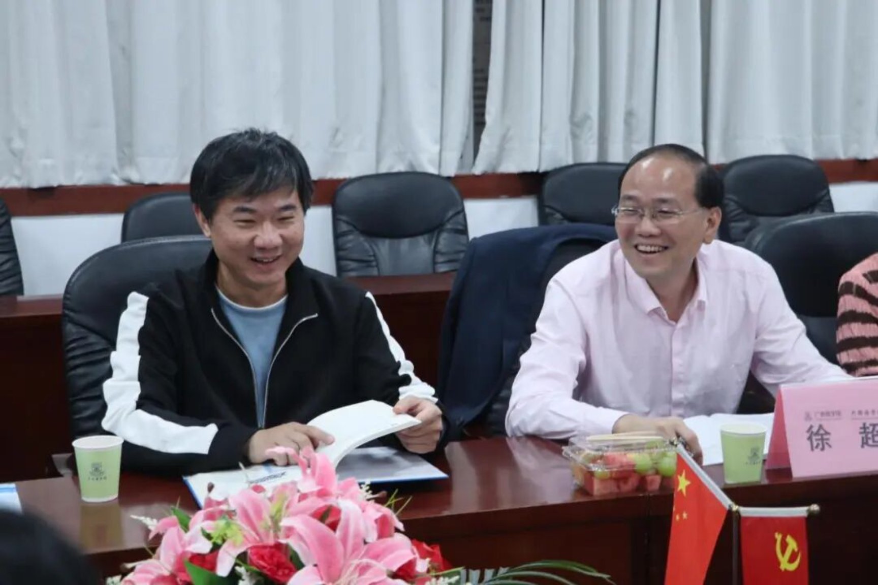 在308会议室的座谈会上,校友与当年的老师围坐一堂。校友会执行会长、校友办主任翁楚歆就校友会建设与发展、母校发展与规划情况作介绍,外国语学院党总支书记徐超就学院专业建设、师资力量、校企合作等情况向校友作分享。