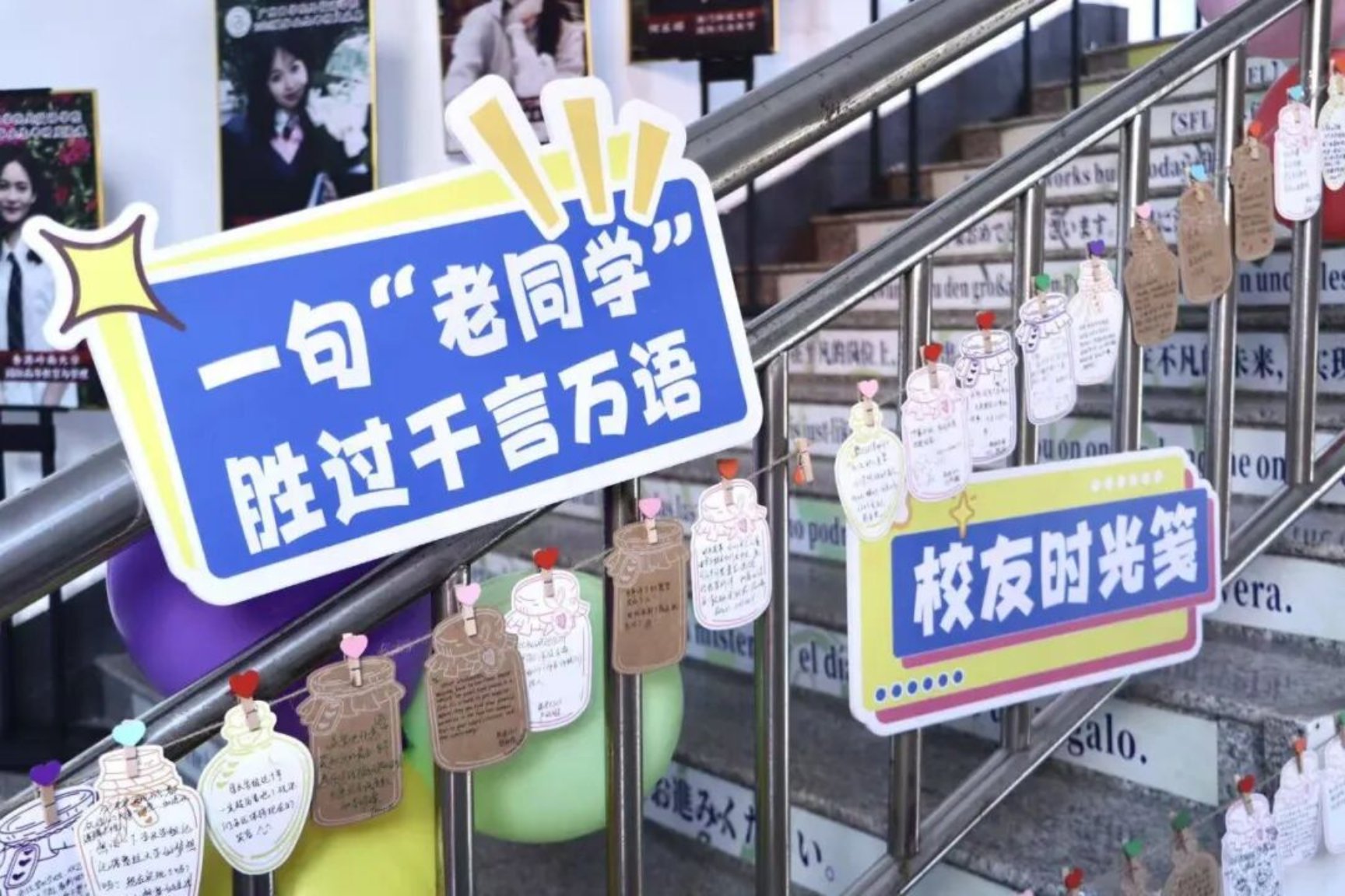 留言处的一朵鲜花,是母校温柔地问候。校友们在签名墙写下自己的名字那一笔一划,不是简单的登记,而是对青春的一声回应:“我回来了。”